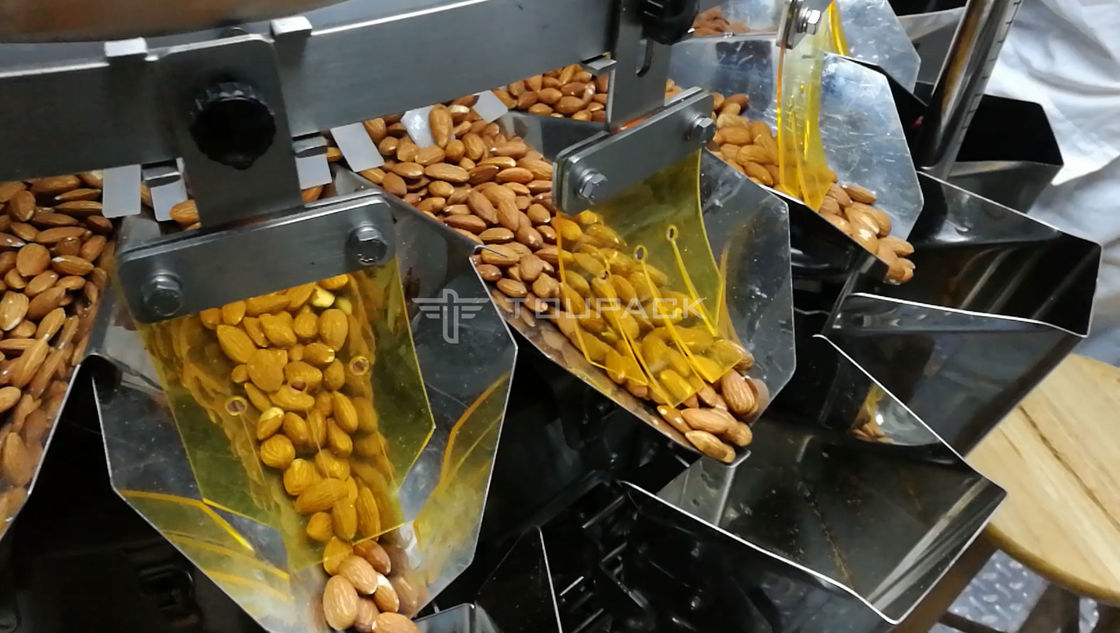 Ζύγιση και συσκευασία ζαχαροπλαστικών, σνακ, ξηρών τροφίμων, τροφίμων για κατοικίδια, τσιπς πατάτας, καρύδια σοκολάτας, ζωοτροφές, δισκία, πιπεριές και παρόμοια προϊόντα.